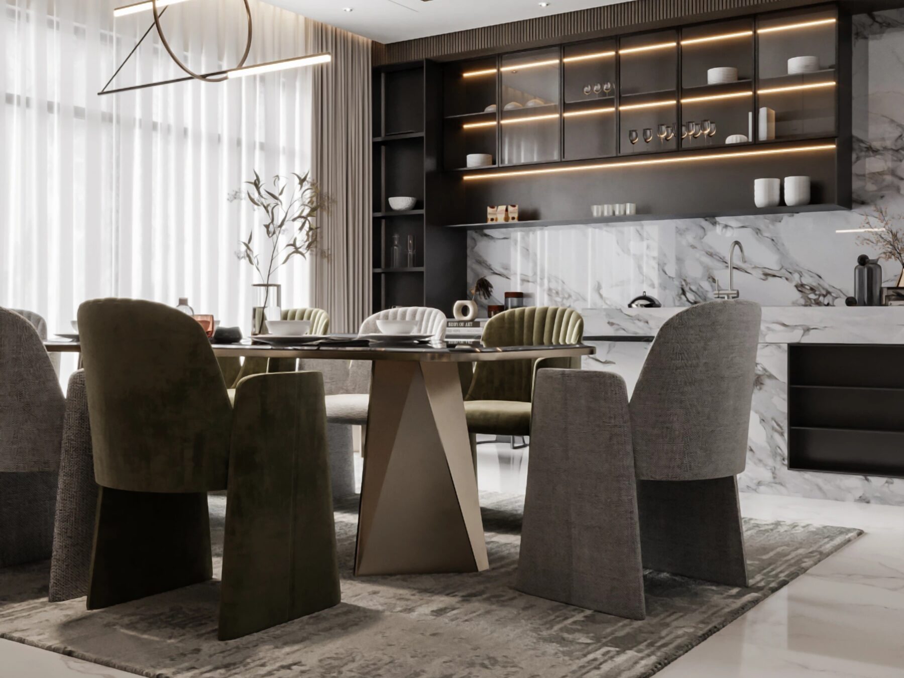 Theo KTS. Trần Lý Hùng, Giám đốc Daiken Design: “Nhiều người cho rằng phong cách hiện đại đồng nghĩa với lạnh lẽo, đó là một quan niệm chưa đầy đủ. Tại Daiken, chúng tôi coi đó là một ‘tấm toan’ để các KTS thể hiện sự tài tình của mình trong việc phối hợp vật liệu. Sự ấm áp của gỗ óc chó, vẻ mềm mại của da Nappa, hay sự sang trọng của đá Marble chính là những yếu tố mang lại ‘nhiệt độ’ và chiều sâu cho không gian“.